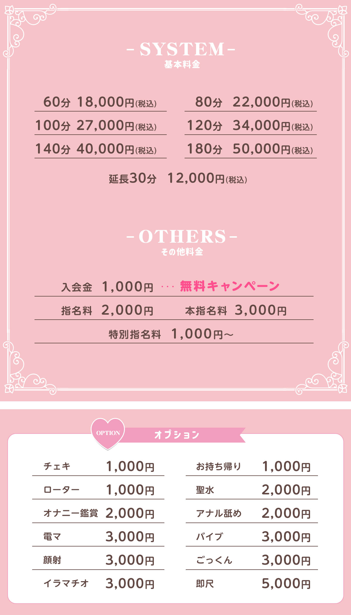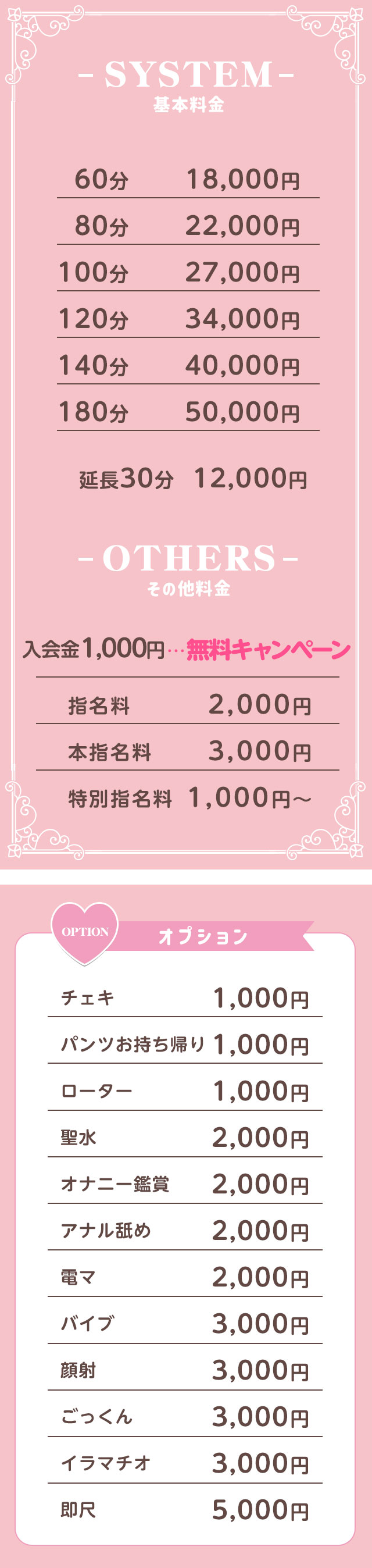 また、女の子によっては追加不可能なオプションもございます。事前にホームページをよくご覧になり、お問い合わせ下さい。